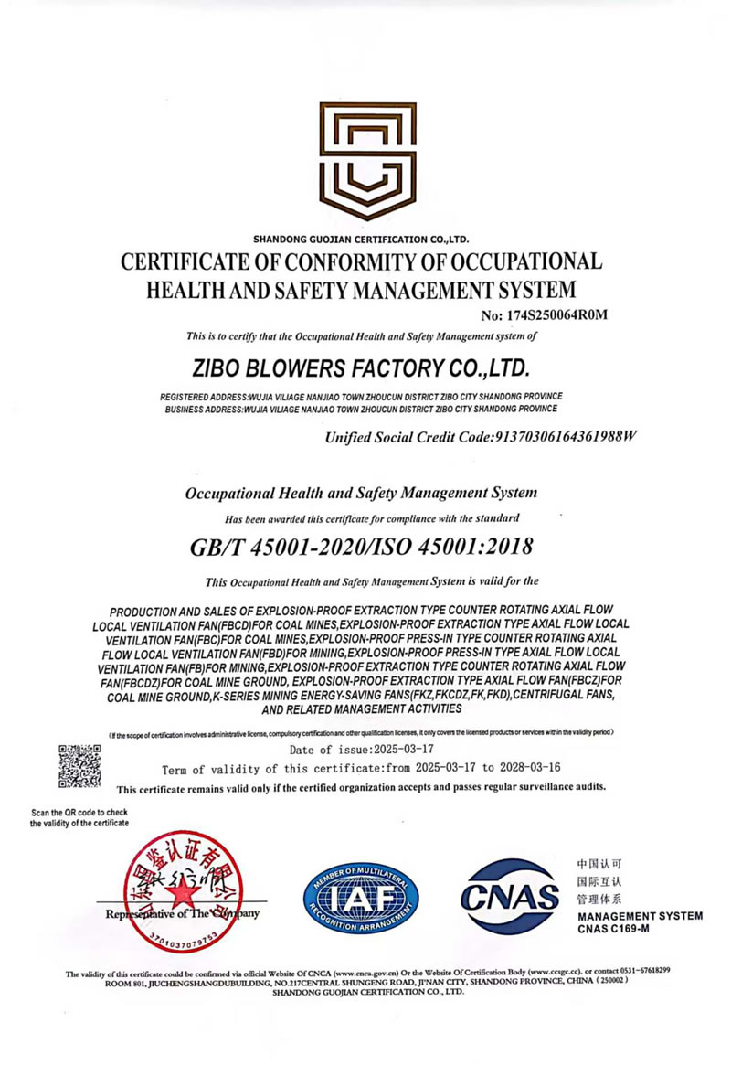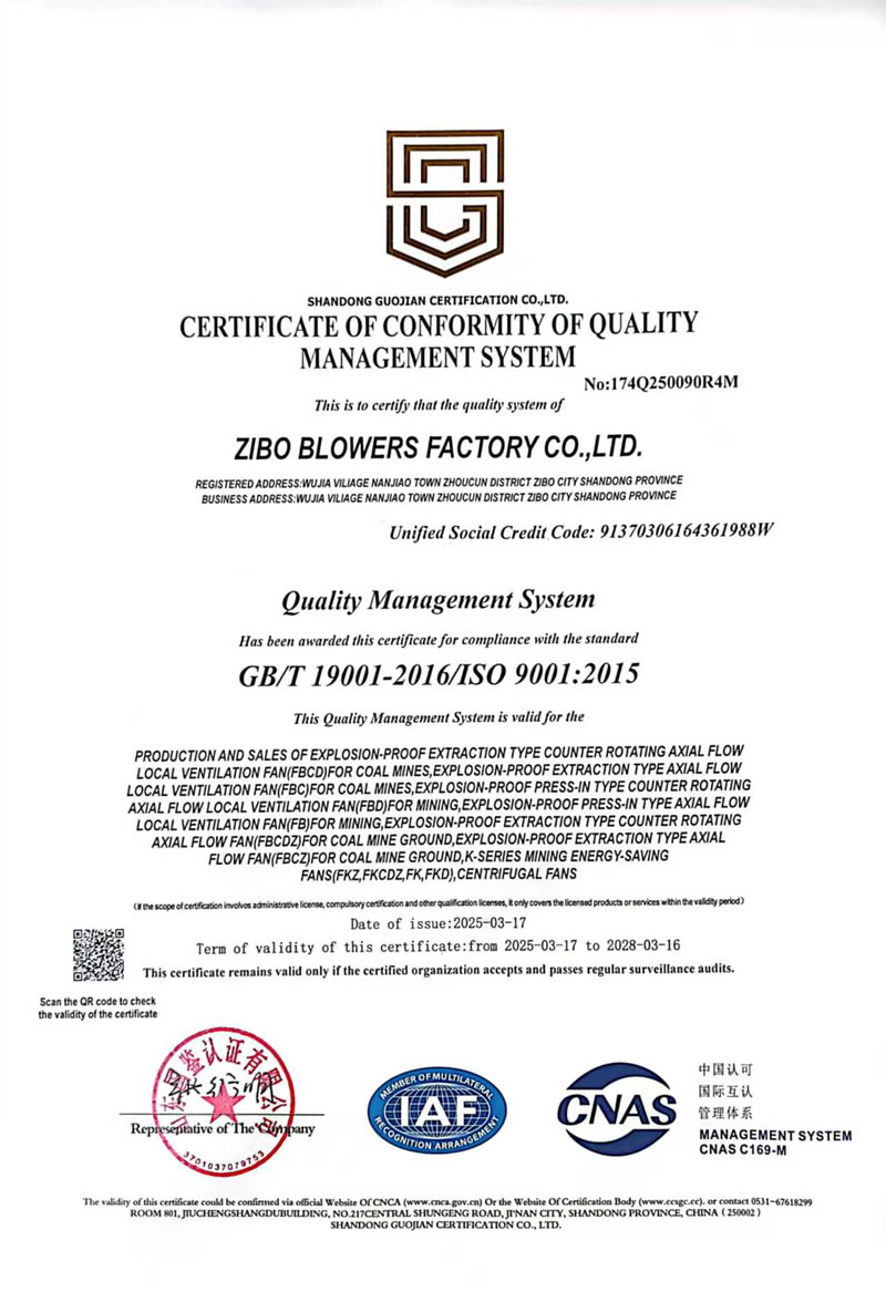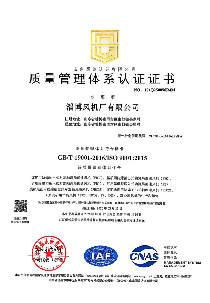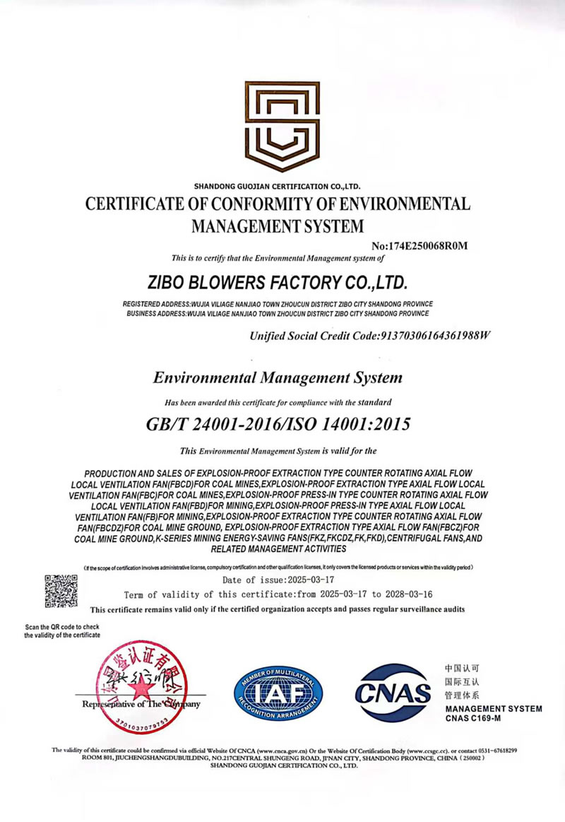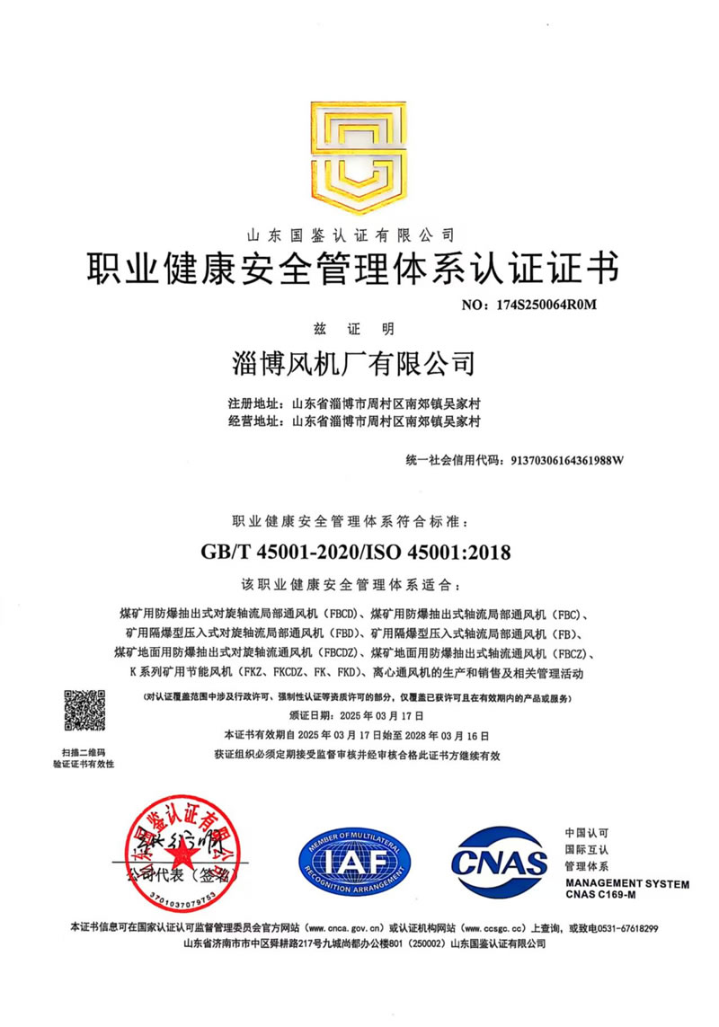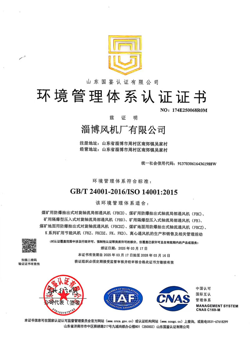 熱烈慶祝:一、淄博風機廠有限公司全系產品通過能效綠色節(jié)能環(huán)保二級認證. 二、 淄博風機廠有限公司通過安全標準化驗收合格. 三、注冊資金增資至7800萬.