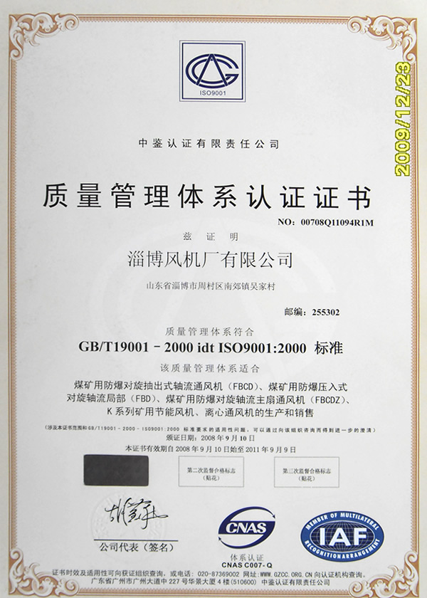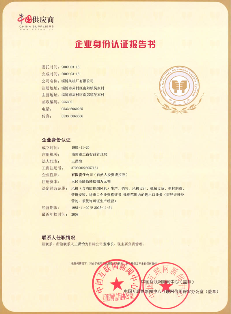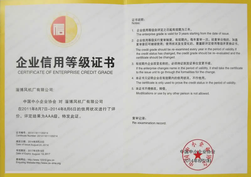 熱烈慶祝:一、淄博風(fēng)機廠有限公司全系產(chǎn)品通過能效綠色節(jié)能環(huán)保二級認(rèn)證. 二、 淄博風(fēng)機廠有限公司通過安全標(biāo)準(zhǔn)化驗收合格. 三、注冊資金增資至7800萬.
